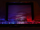 Koffer Modellbahn neu, Fertiganlage, Modellbahnskulptur aus Plexiglas über drei Ebenen,