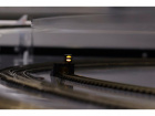 Unter anderem nahezu unsichtbar verkabelte elektrisch schaltbare Weichen und beleuchtete Prellböcke sowie ein weiteres langes Abstellgleis auf der untersten Ebene mit drei unterteilten Stromabschitten, auf denen relativ lange Züge abgestellt werden können.