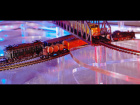 Modellbahnkoffer, Modelleisenbahn aus Plexiglas über drei Ebenen, moderne Modellbahn, Fertiganlage