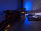In den Kofferboden ist eine Beleuchtung fest installiert, die die Bahn perfekt ausleuchtet. Die Modellbahnskulptur bietet Genuss pur. Man kann stundenlang das Schattenspiel der verschiedenen Modelle verfolgen. Es wirkt wie ein Ballett, das zugleich den Charakter der verschiedenen Modelle hervorhebt.